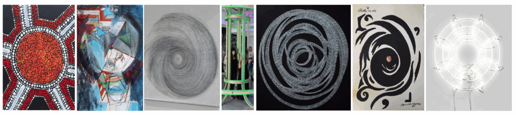 Ce phénomène des plus étranges, alors que les artistes Aborigènes d’Australie n’ont probablement pas eu accès ni étudié les mystiques juives ou chrétiennes, trouvera peut-être un début d’explication dans la compréhension des phénomènes de résurgences et de synchronicités transhistorique, que l’on trouve souvent dans les esthétiques de l’Invisible. Et qui se reconduisent à travers l’histoire de l’art depuis la nuit des temps, d’une culture à l’autre, comme on peut le constater ici.