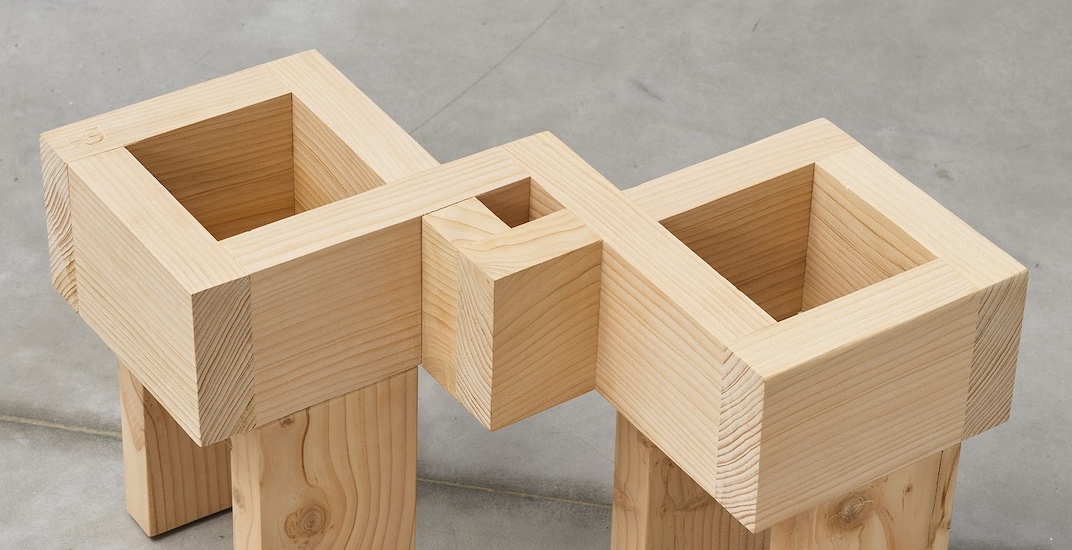 Un quatrième motif récurent a également fait son apparition dans l’exposition après ceux de l’arbre, des volutes et des visages. Ce quatrième motif a pris les traits d’une figure géométrique décrivant une forme de losange constitué de chevrons entrecroisés. On le retrouve en particulier dans les œuvres de Olivier Raud et de Myriam Mechita. Notamment dans la structure des prototypes des assises « Ozo » qu’Olivier Raud a réalisés en bois polarisé, spécialement pour l’exposition. Pour ces créations montrant deux losanges intriqués en formant un troisième, la géométrie participe d’une signature vibratoire résultant d’une synthèse des deux losanges opposés. Le losange central, qui incarne un point de résolution des contraires, génère un espace-temps spécifique, que l’on peut ouvrir et activer en se positionnant dessus. Comme sur un siège. L’expérimentation de cet objet et de cet espace intermédiaire est tout l’enjeu du travail récent de Olivier Raud. Après avoir développé la polarité pendant plusieurs années à partir de structures toroïdales, il accède ainsi à une nouvelle étape de son avec le développement de ce tiers espace. L’un des enjeux actuels du design énergétique qui va bien au-delà de la création d’objets.