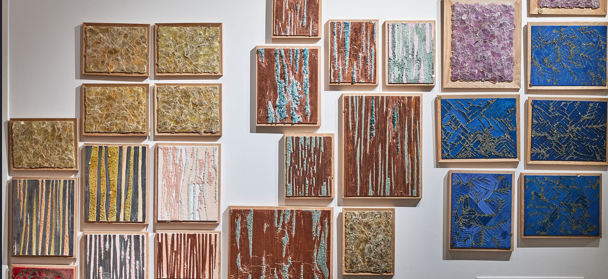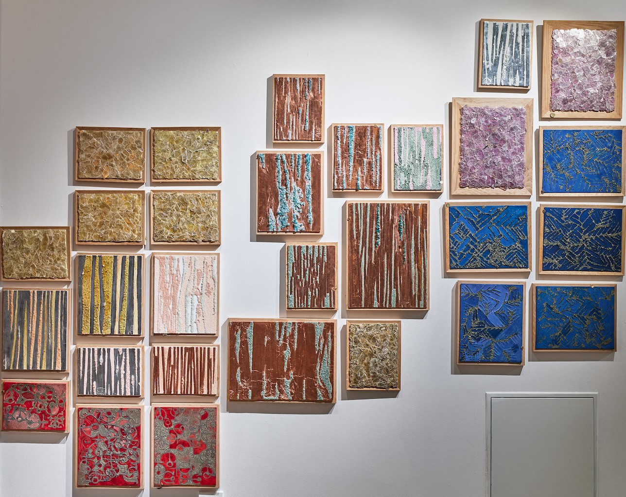 Cette proposition expérimentale, est intimement liée à la question de l’énergétique des œuvres d’art, qu’il est proposé ici au visiteur de ressentir et d’utiliser, comme technique de créativité visionnaire. Dès l’entrée de l’espace, les compositions de minéraux d’Eli Tanna, conçues en correspondance avec les chakras du corps humain, permettent au visiteur en quelque sorte de se préparer en harmonisant ses fréquences. Alors qu’il lui est proposé, de conscientiser ses ressentis énergétique en percevant avec toutes les parties du corps, les ondes produites par les tracés abstraits produits par les minéraux. Les petits tableaux ayant été disposés à différentes hauteur, des pieds jusqu’à la tête, à cet effet.