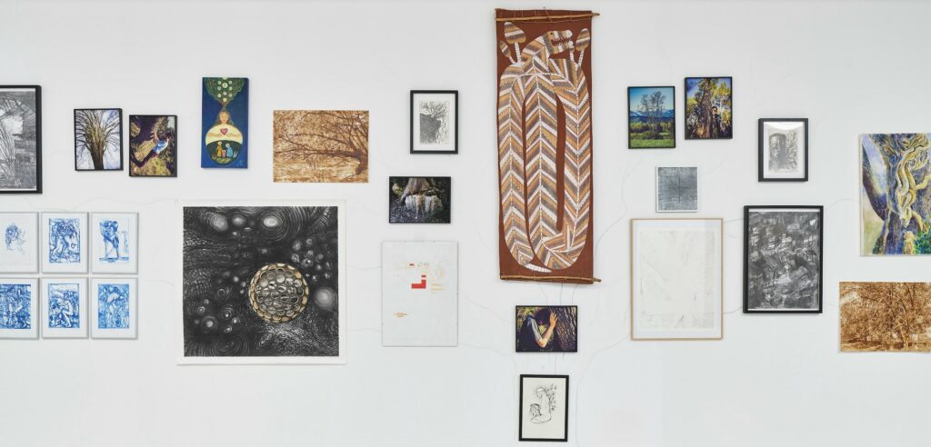 La première partie de l’exposition intitulée « La forêt qui soigne » est dédié aux dimensions prophylactiques et réparatrices du dessin, agrégées à celles des arbres. Elle a été en grande partie inspirée par les ateliers des visions et la pratique de la connexion aux arbres.