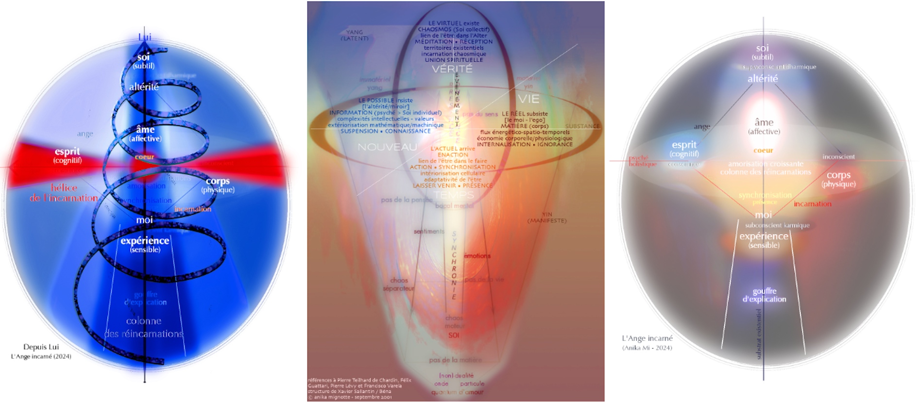 Une vision n’est donc pas qu’une image, un symbole ou un motif. Une vision peut aussi être une sensation, une impulsion voire un affect. Sinon une énergie. Elle intervient souvent d’ailleurs dans l’effusion des émotions et des ressentis. Ne dit-on pas qu’une émotion est une énergie. D’après les expérimentations menées par Bernard Blancan, il semblerait bien que les émotions et les affects, à travers nos implications « psychophysiologiques » qu’il mesure, puisse produire un effet sur la matière et le trame de l’espace-temps, en imprimant leur texture dans celle de l’univers.