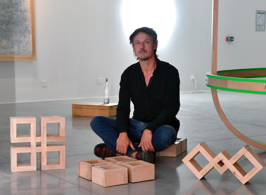 Le visiteur est invité à poursuivre ce travail dans la structure toroïdale de Olivier Raud, positionnée au centre de l’espace, dans laquelle il est possible de pénétrer et de séjourner. Réalisée en bois polarisé, elle génère un champs magnétique propice à la méditation et à la créativité. Olivier Raud présente également les prototypes de ses dernières créations d’objets polarisés que l’on peut utiliser à travers toute l’exposition, sous formes de sièges ou de coussins de méditation, qui joue le rôle d’exhausteurs de flux énergétiques, pour mieux ouvrir ses perceptions et se connecter aux œuvres.